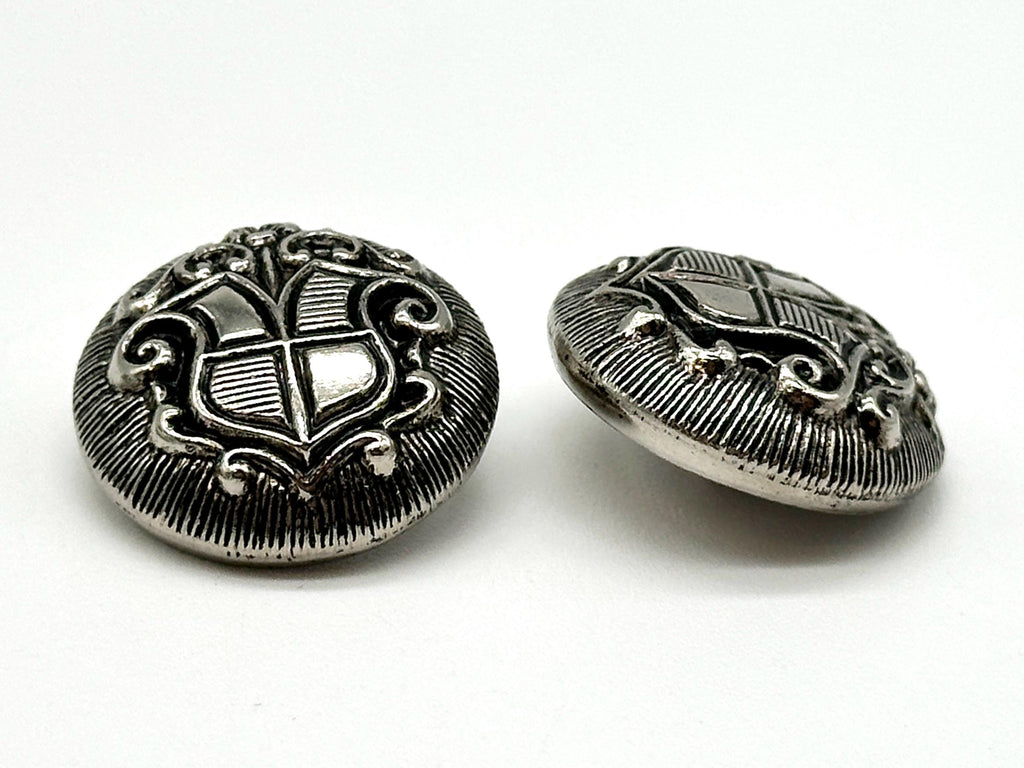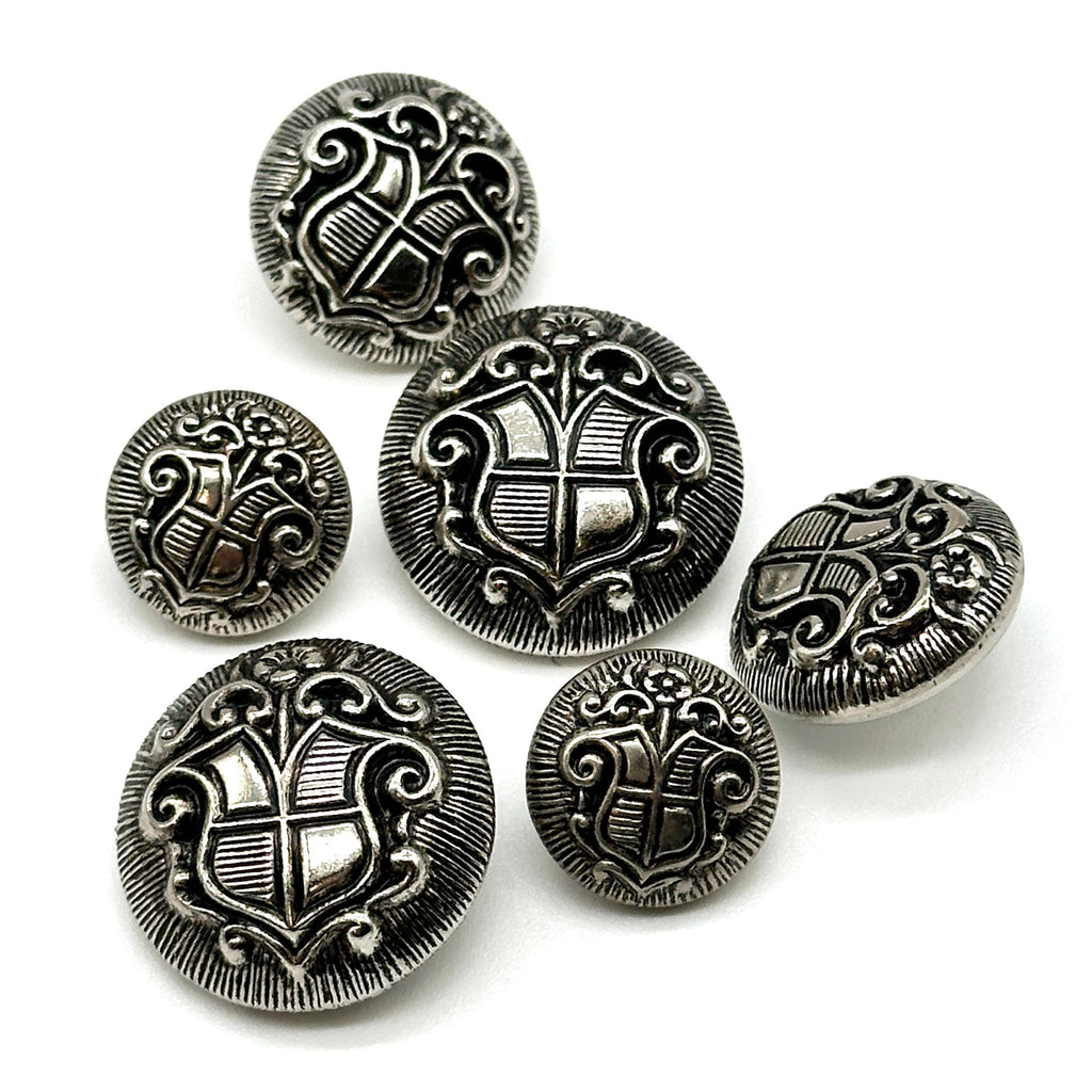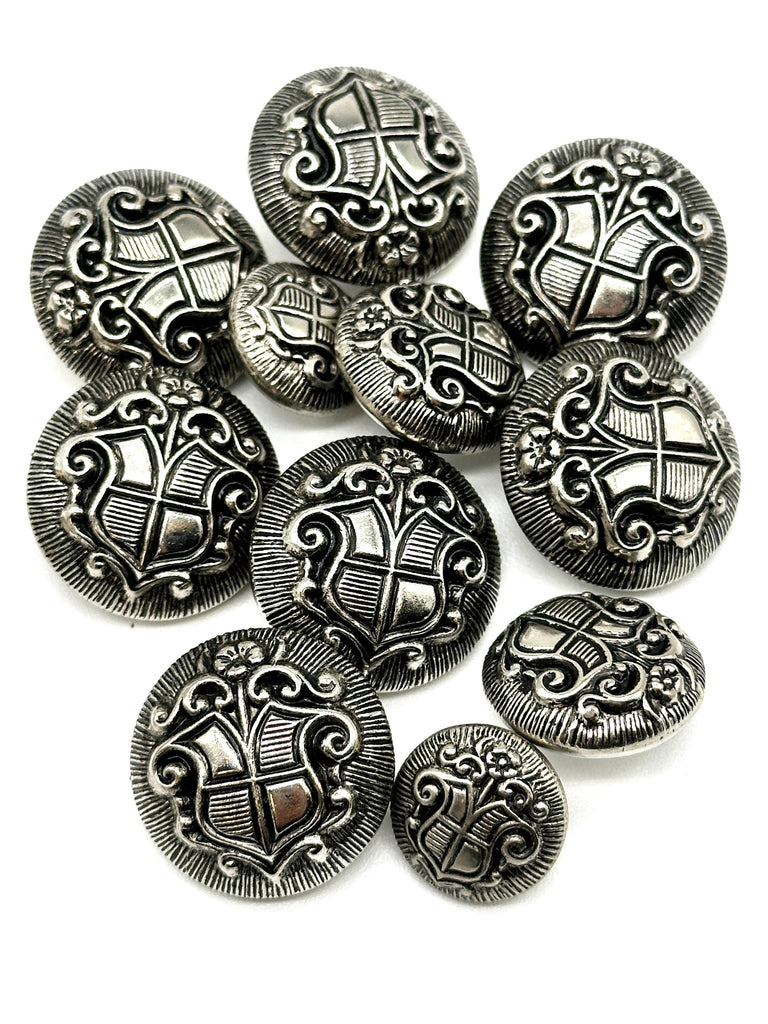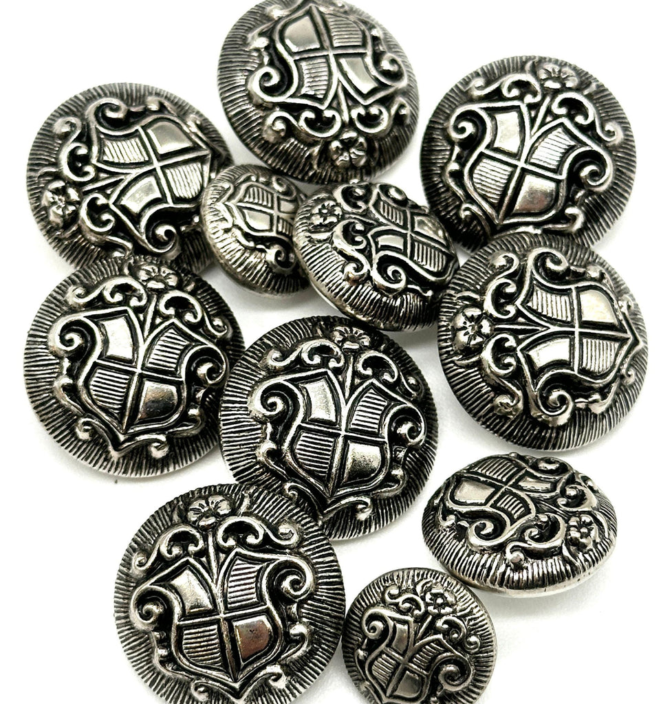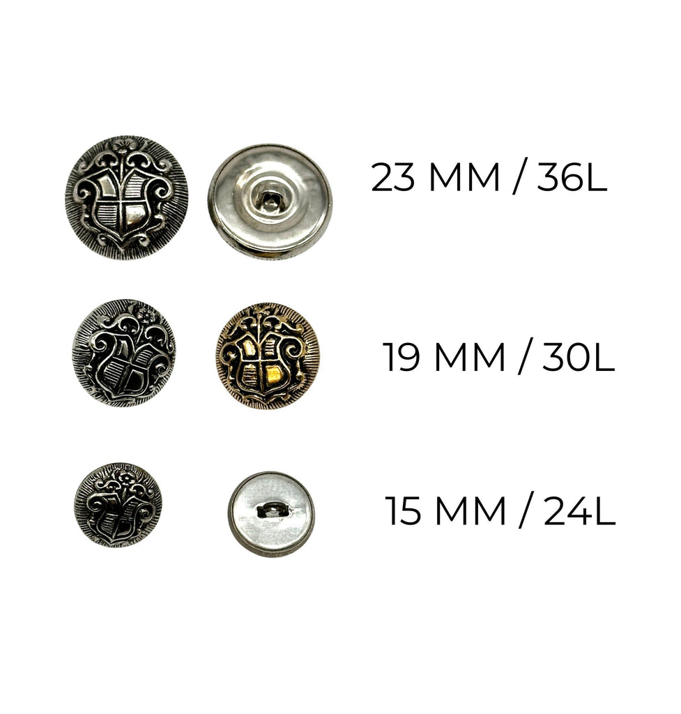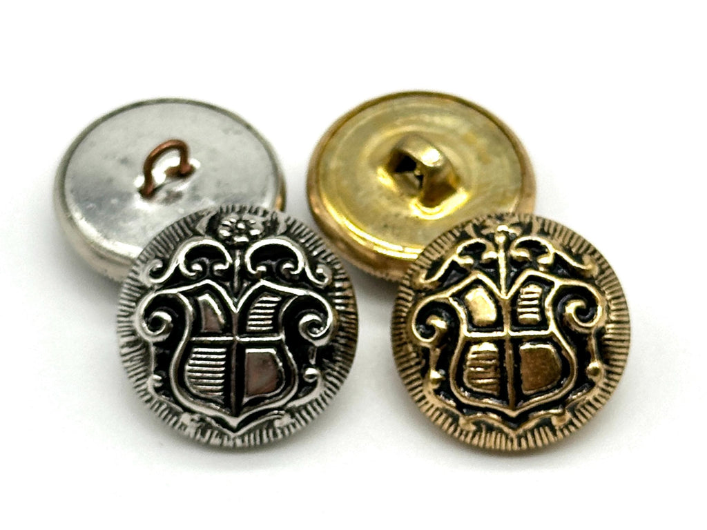 1 Dozen Vintage "Coat of Arms Crest" Metal Shank Buttons | Antique Gold & Silver | Decorative Sewing Buttons | DIY Crafting Supplie | (6128)