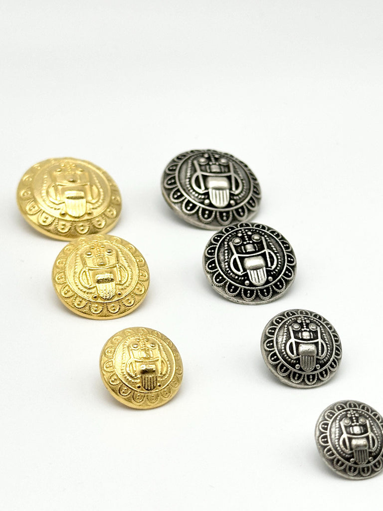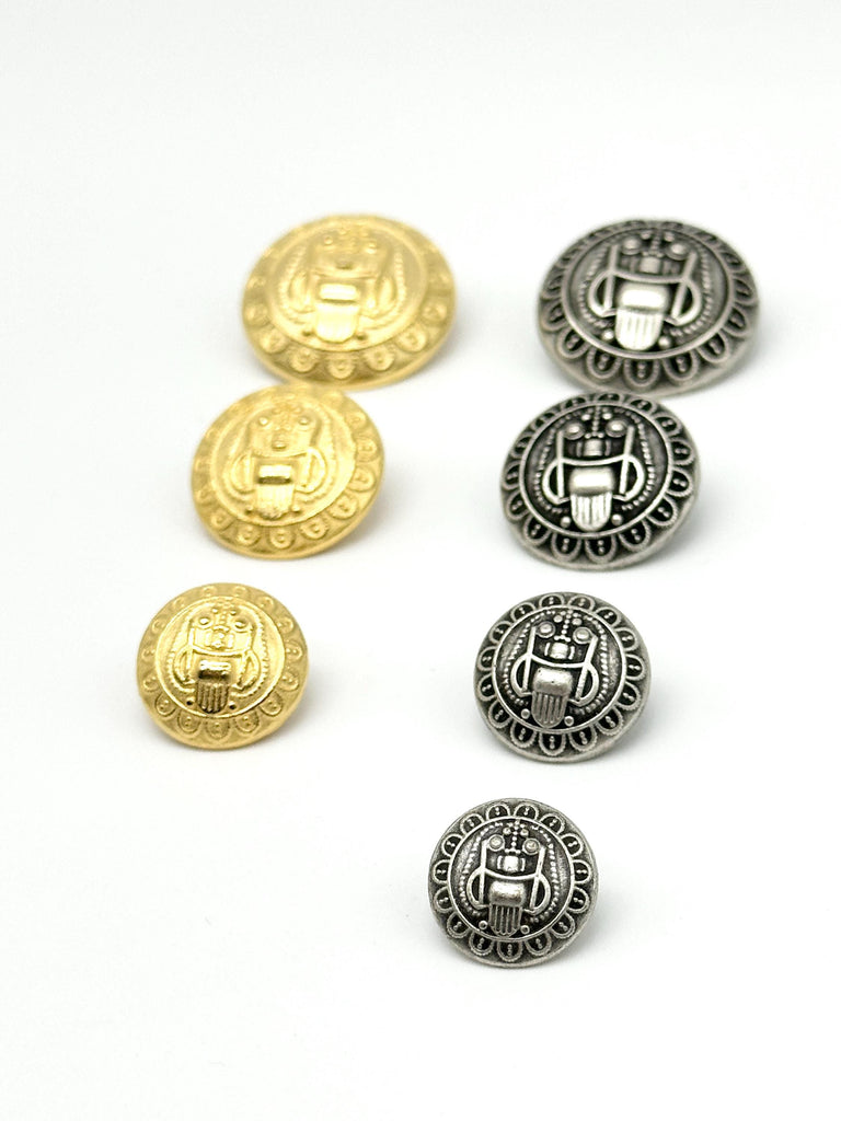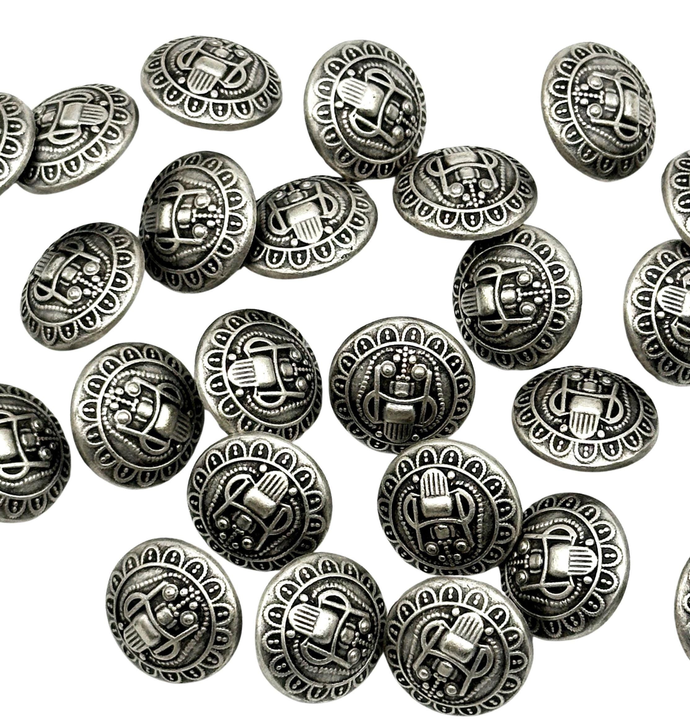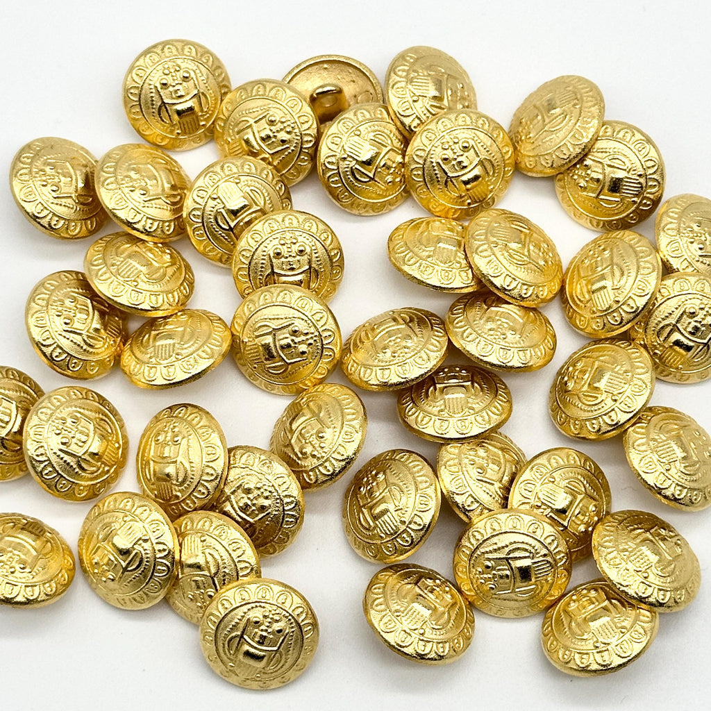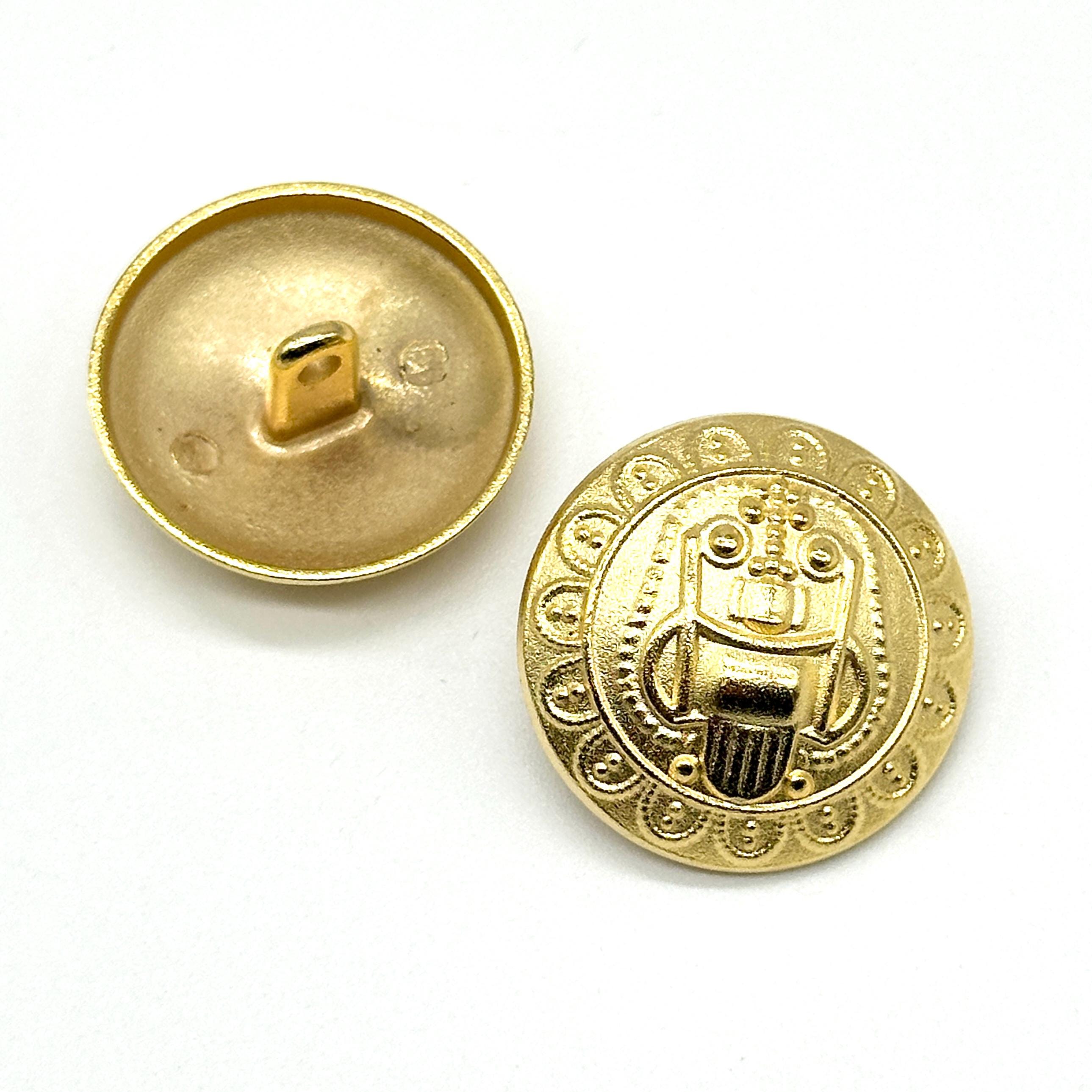 Step back in time with our Vintage Metal Shank Buttons featuring exquisite Aboriginal designs! Each package includes 12 uniquely crafted buttons in captivating gold and silver tones, perfect for adding a touch of historical elegance to your clothing projects. These Vintage Buttons are not just functional but also serve as miniature works of art, reflecting the rich heritage and cultural significance of Aboriginal designs. Whether you're restoring a treasured garment or adding a distinctive flair to your latest sewing creation, these buttons are sure to impress. Elevate your style with our collection of Unique Buttons and make a statement that transcends time. Explore the charm of yesteryears with Vintage Button Store today!One Dozen Beautiful Vintage Metal Shank Buttons. Made in Italy in the 1990's.