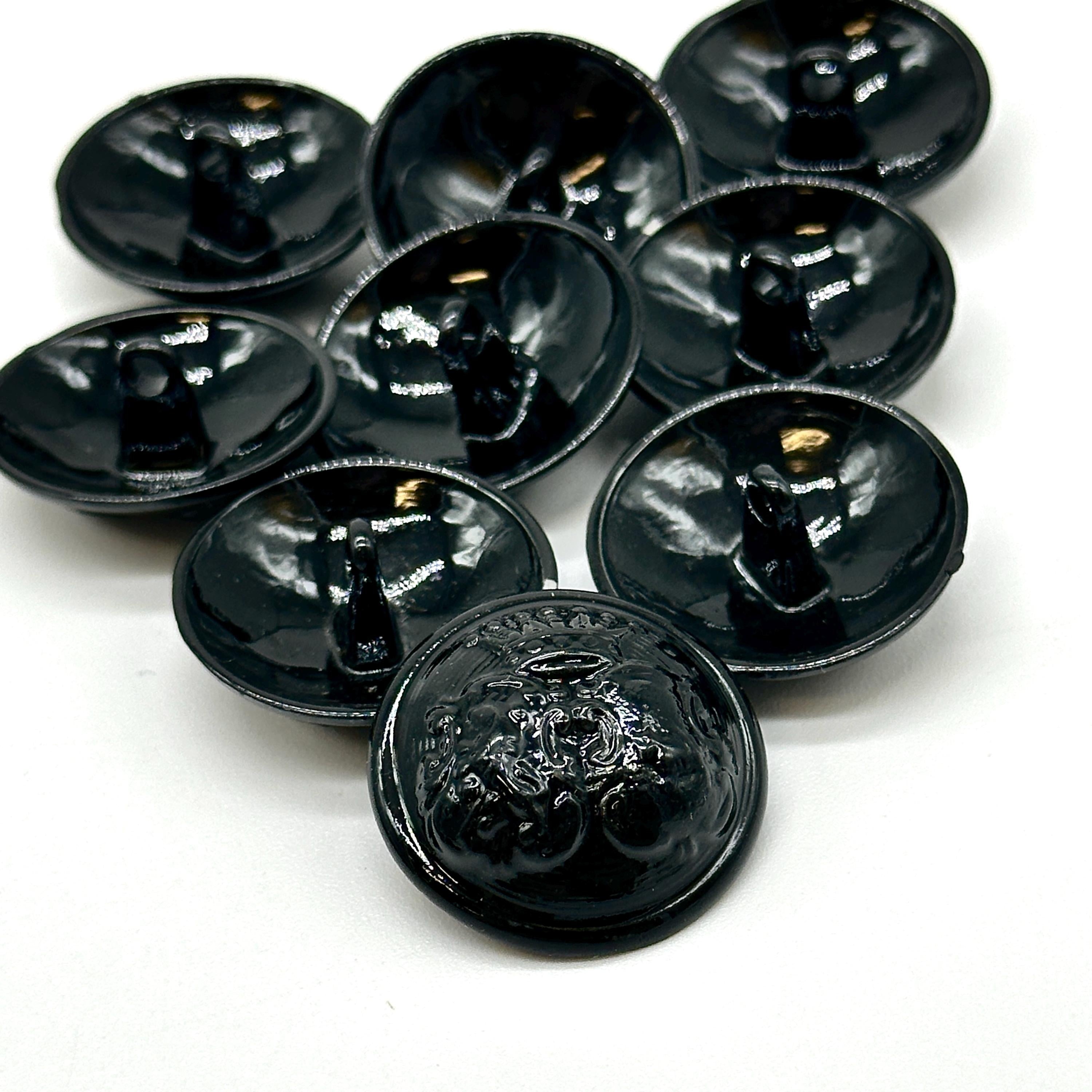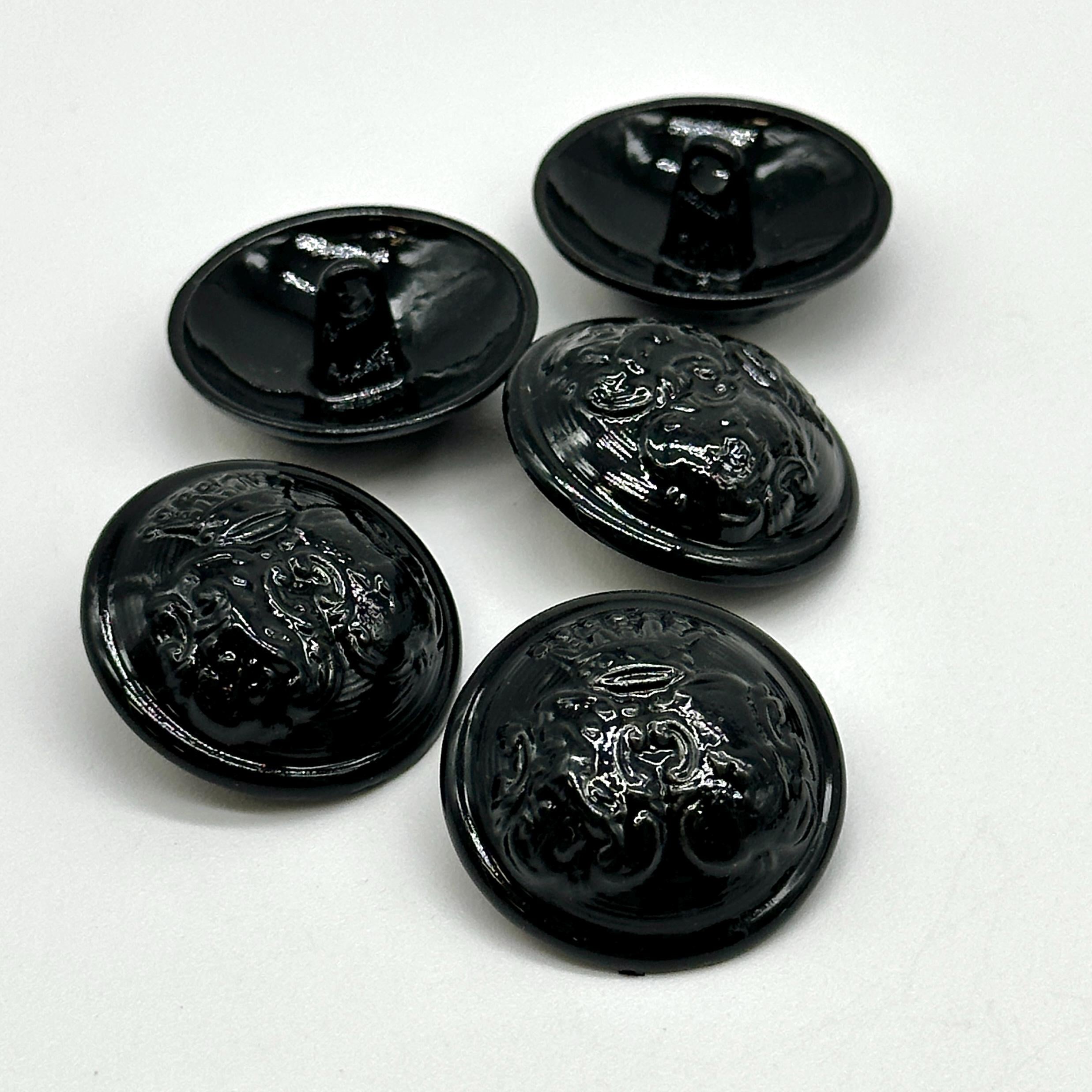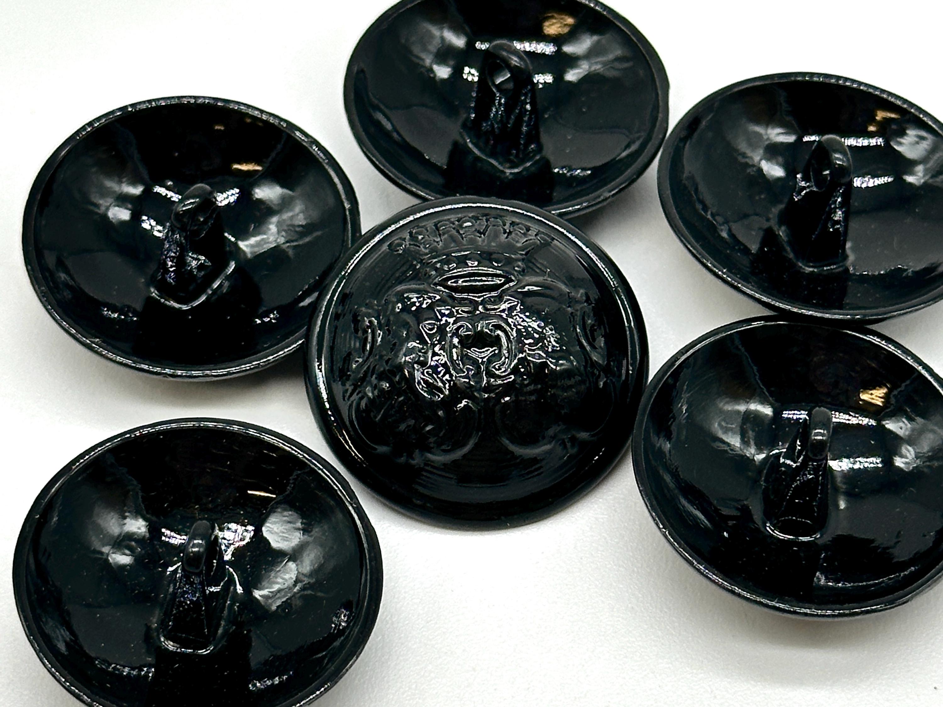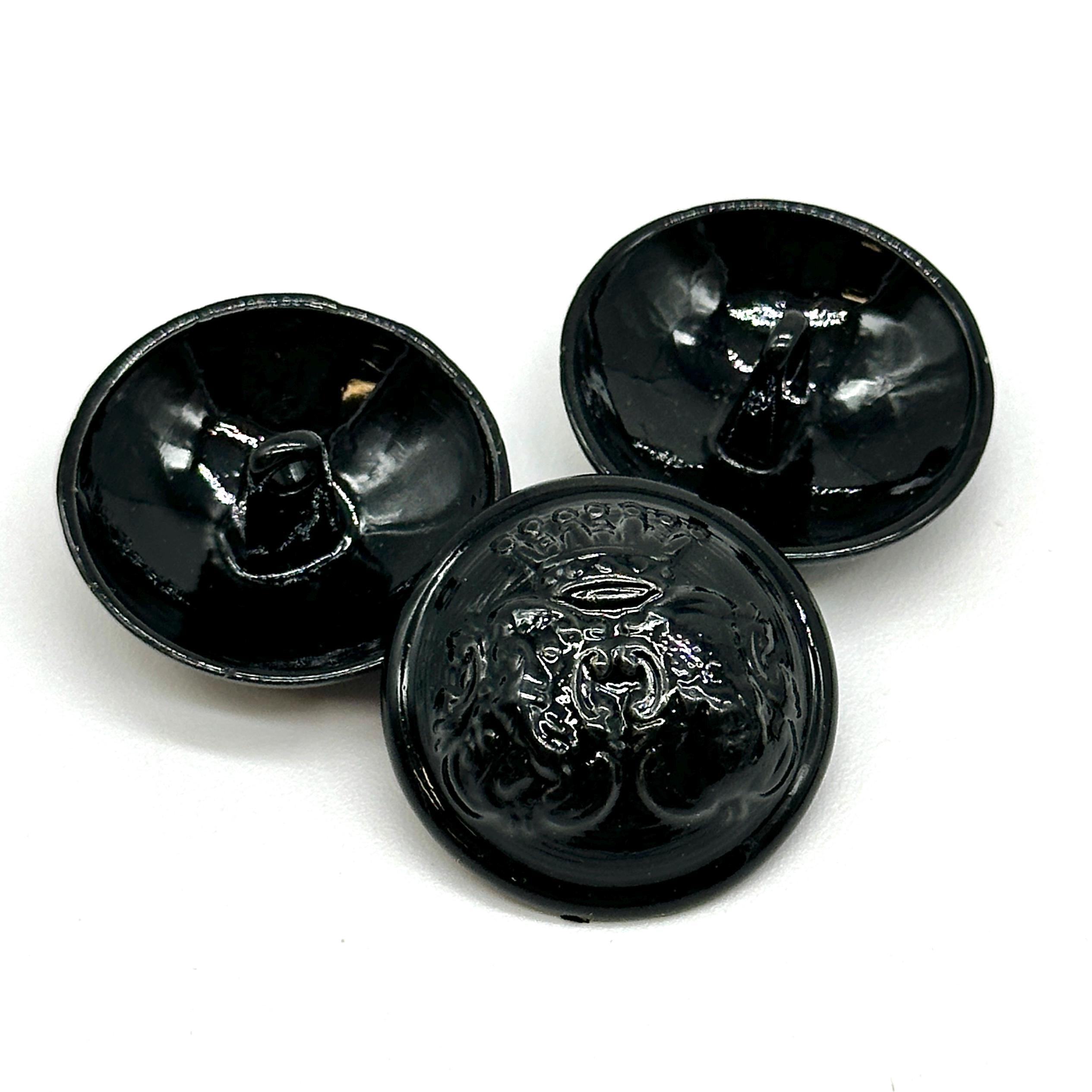 Set of 12 Vintage Black Coat of Arms Shank Buttons - Perfect for Jackets, Coats, and Crafting ProjectsElevate your sewing and DIY creations with these stunning vintage black coat of arms shank buttons. Each button features a detailed coat of arms emblem with a glossy black finish, making them ideal for adding a regal touch to your garments. These buttons are perfect for jackets, coats, blazers, and more, offering a unique decorative flair to your designs.Crafted from durable materials, these antique-inspired buttons are ideal for use in fashion, crafting, and upcycling projects. The elegant design and solid construction make them perfect for both professional and personal use. Whether you're replacing old buttons or adding a vintage touch to a new piece, these buttons will make your garments stand out.Product Features:Material: High-quality metal with a glossy black finish