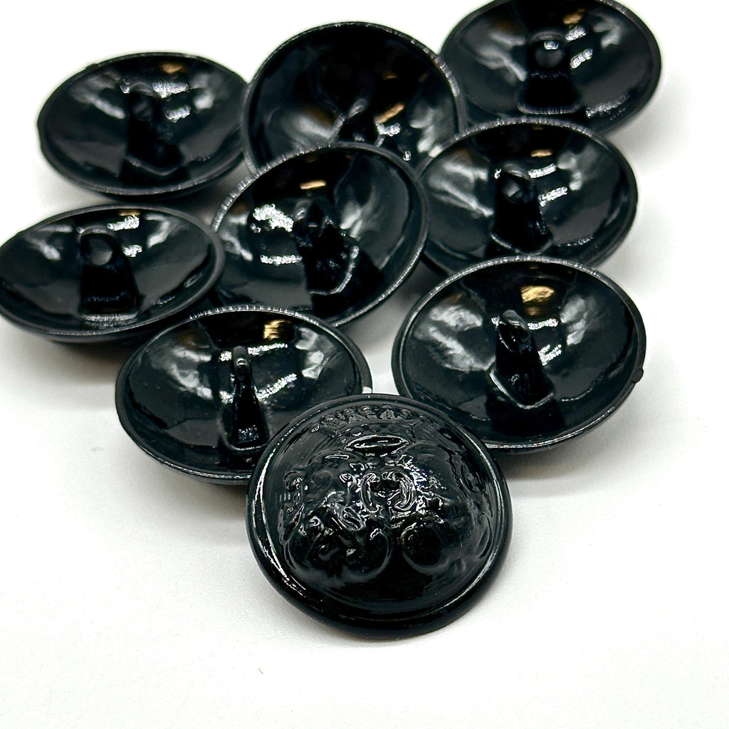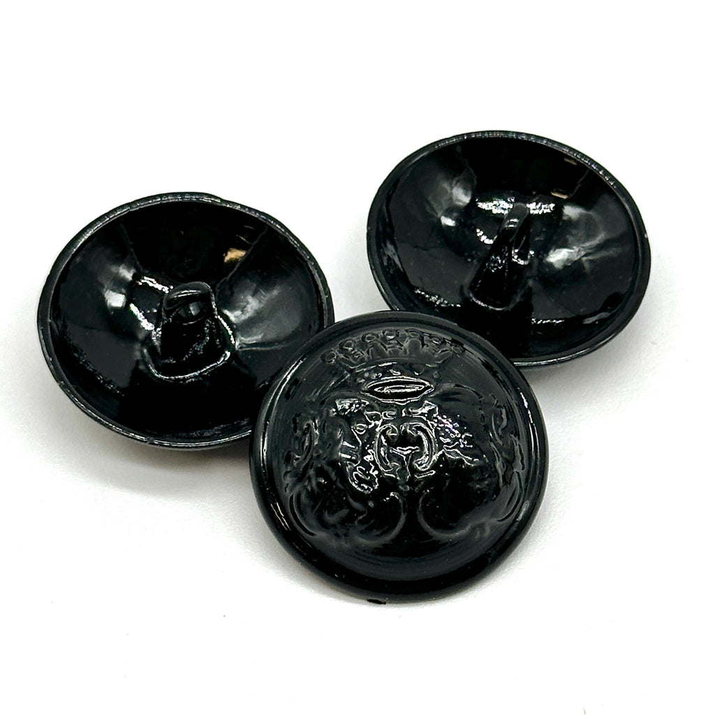 12 Pcs Vintage Black Coat of Arms Shank Buttons Glossy Finish 40L for Jackets, Coats, Blazers | Decorative Buttons for Sewing | (K5167)