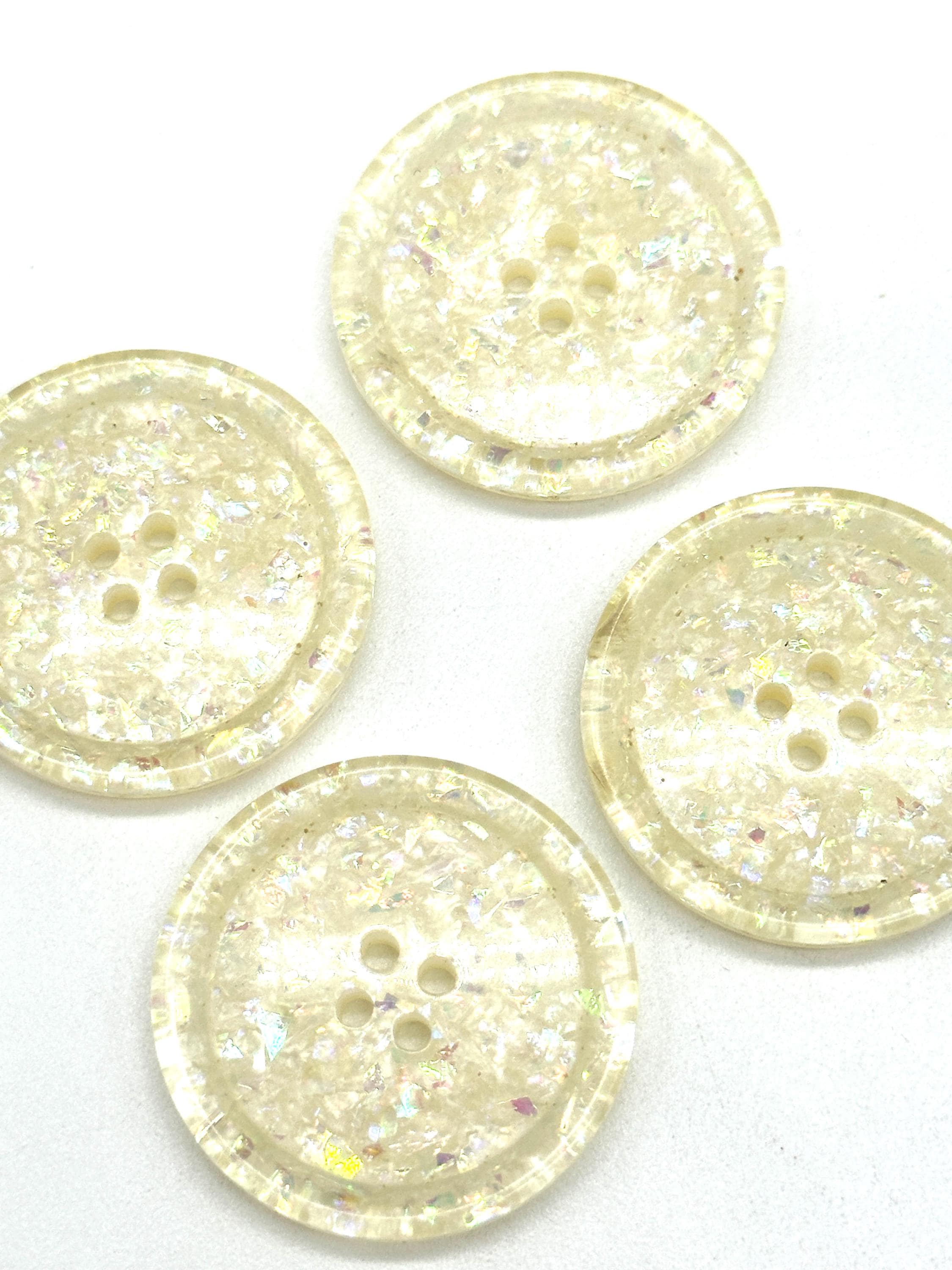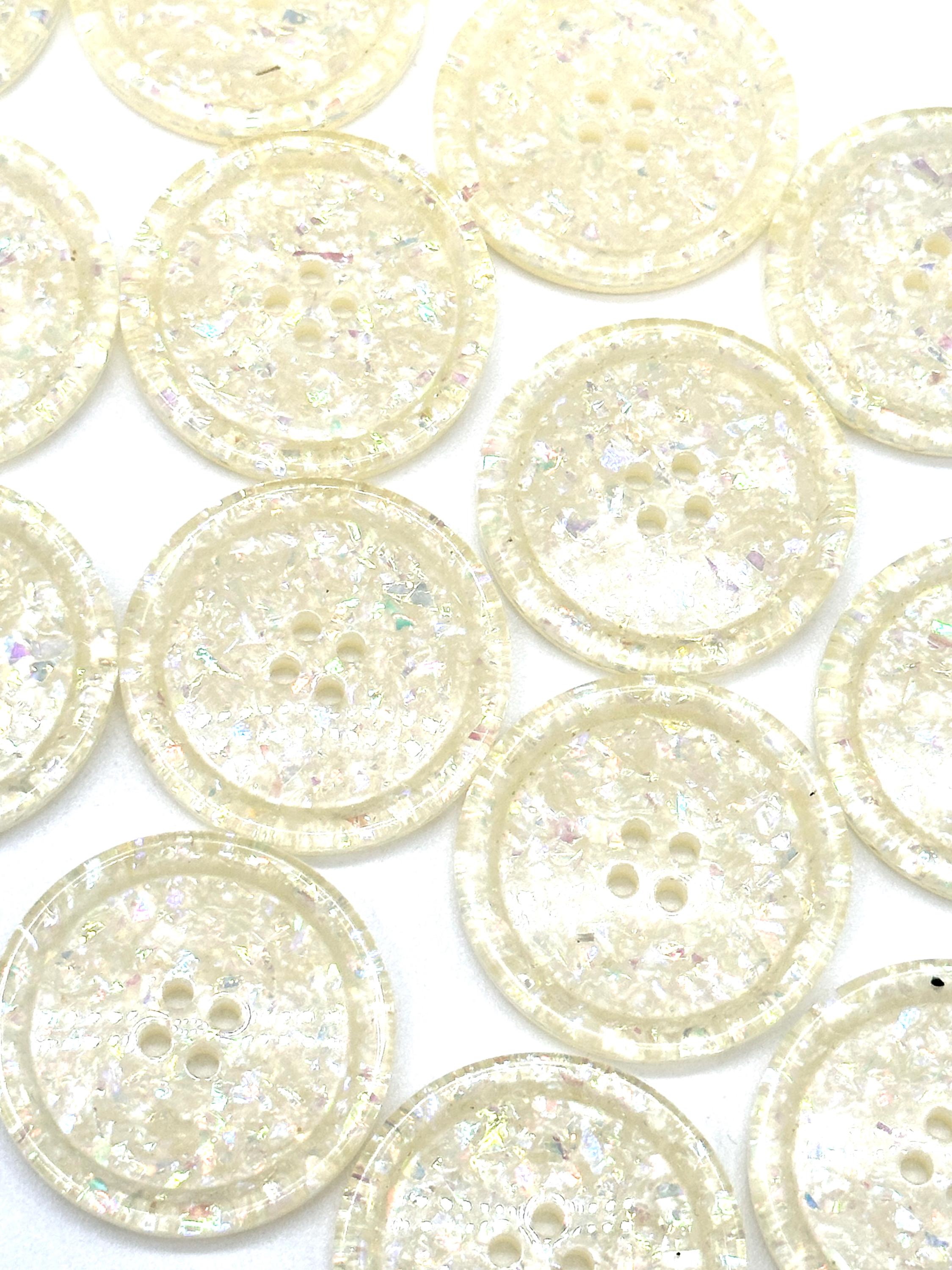 12 Pcs Vintage Iridescent White Glitter 4-Hole Buttons 30MM Sewing Craft Supplies | Decorative Clothing Buttons for Coats, Jackets | (A8183)