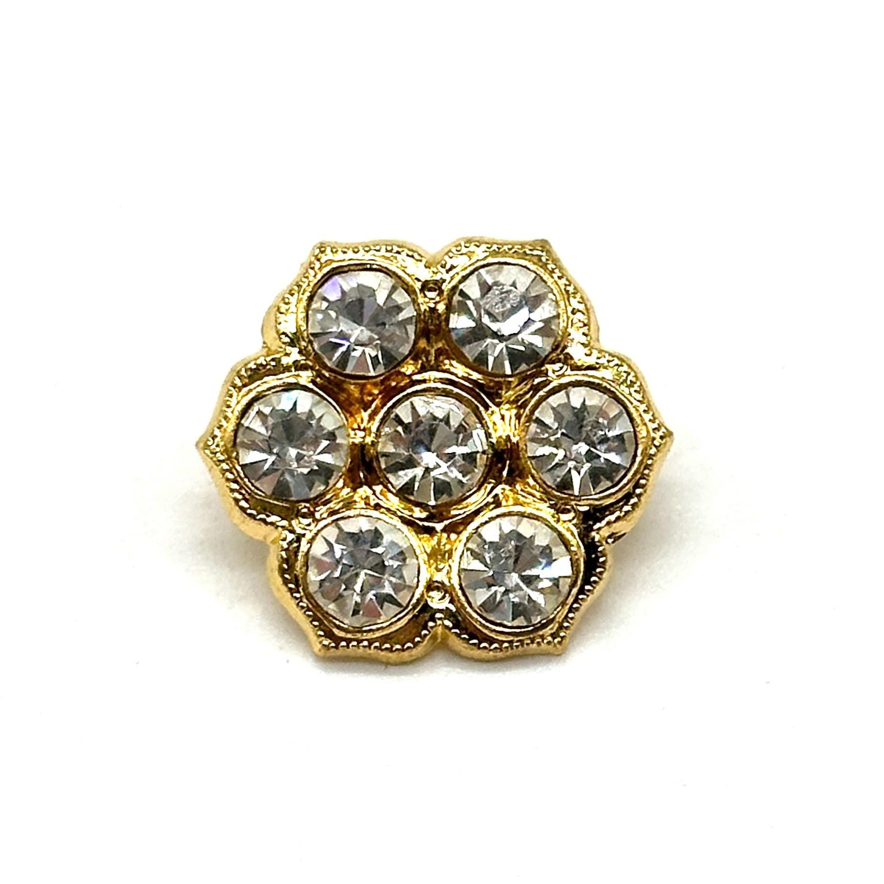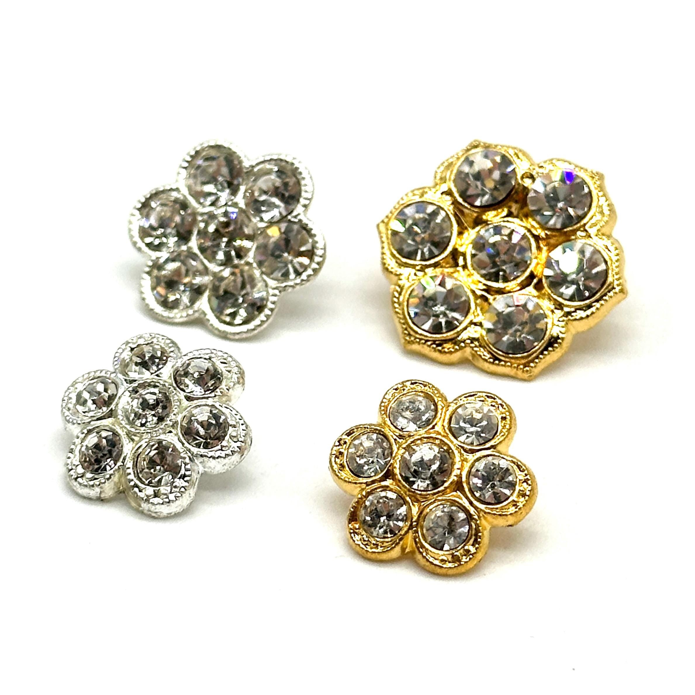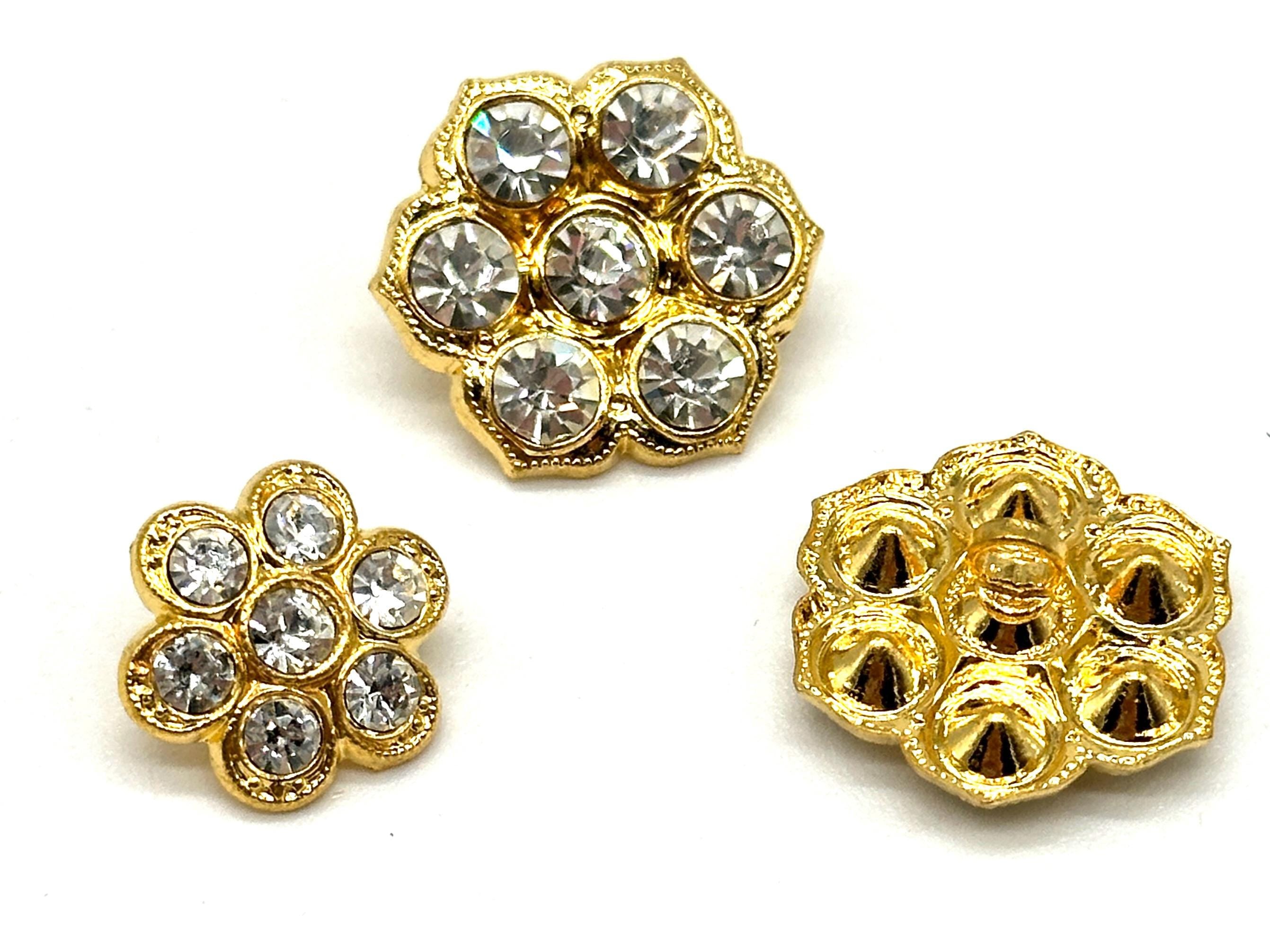 Set of 12 Vintage Rhinestone Metal Shank Buttons - Ideal for DIY Crafts, Sewing, and Clothing ProjectsAdd a sparkle of elegance to your garments and craft projects with these vintage-inspired rhinestone metal shank buttons. Featuring a dazzling floral cluster design, these buttons come in two stunning finishes – gold and silver – perfect for embellishing jackets, coats, blazers, shirts, dresses, and other fashion items.These decorative buttons are great for fashion upgrades, crafting ideas, and upcycled clothing projects. Sourced from our curated vintage button collection, they are brand new and unused, offering a classic, elegant touch to any design.Material: Metal with rhinestone accents