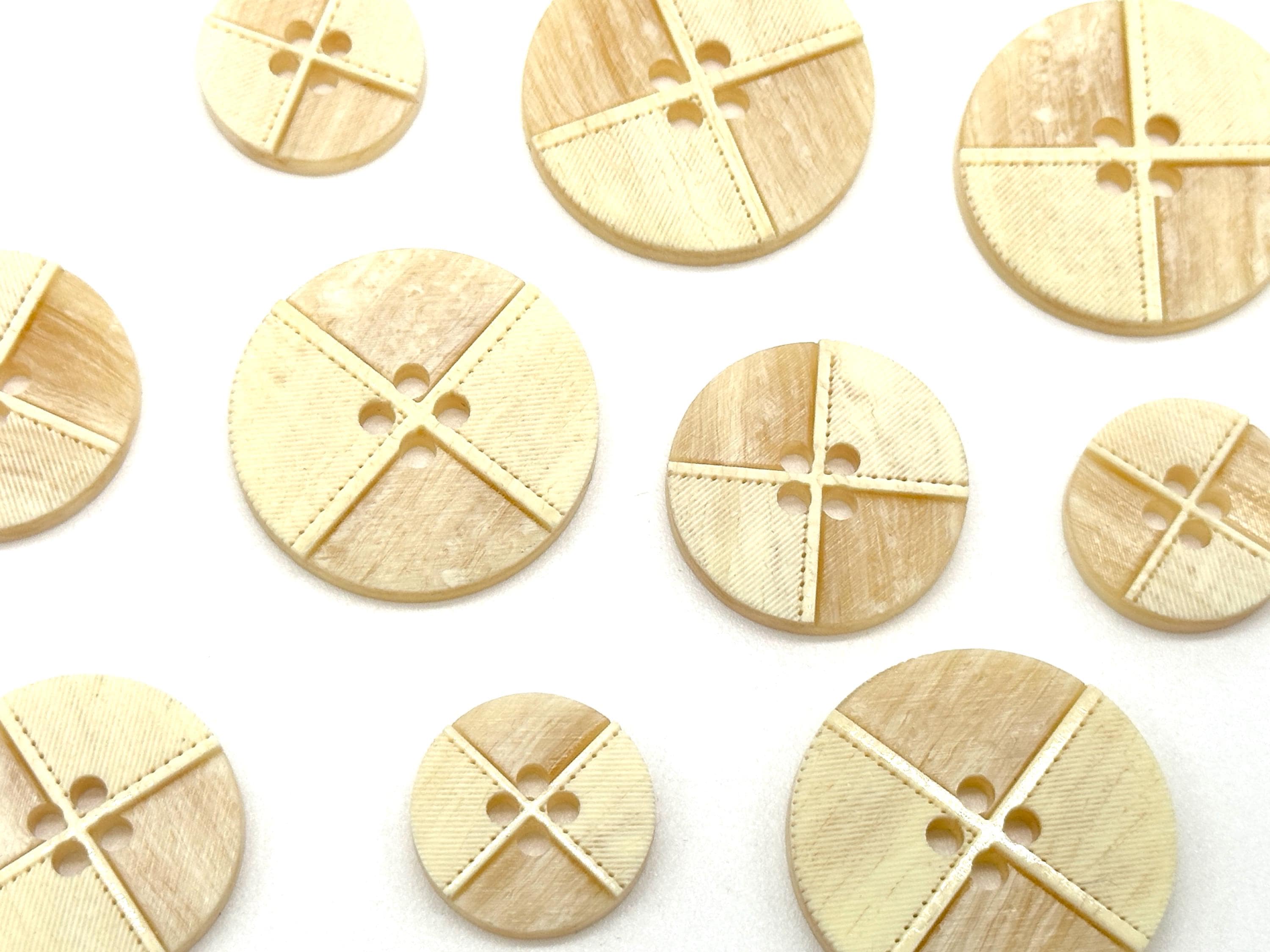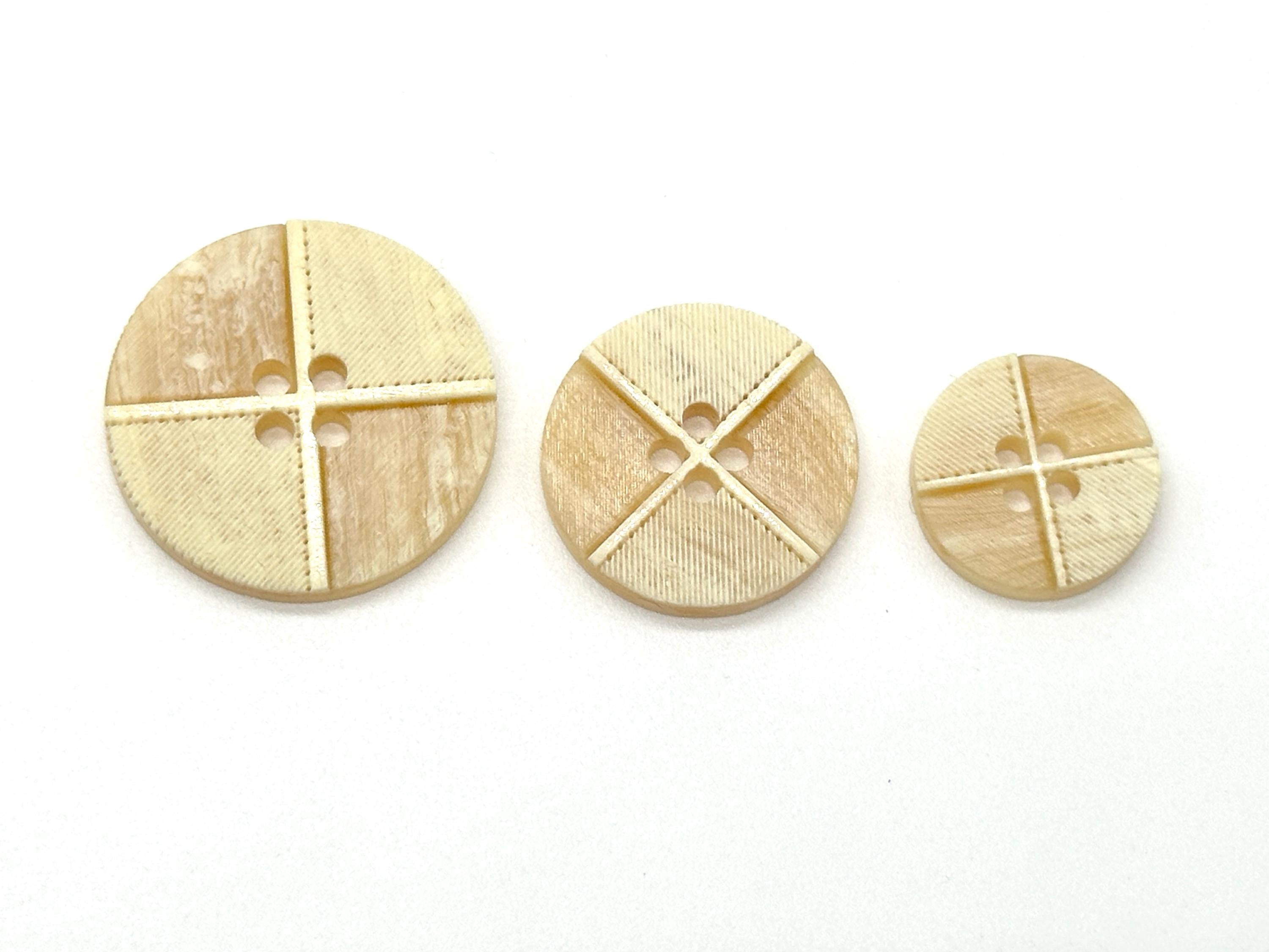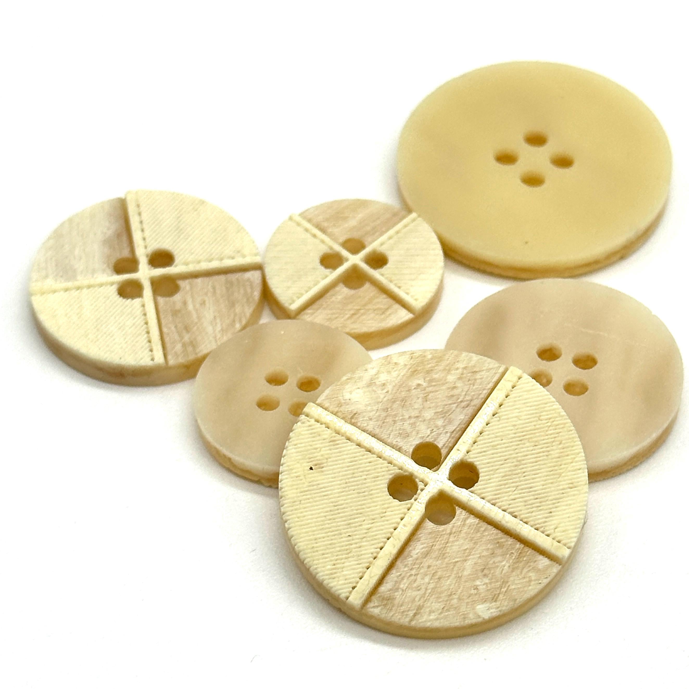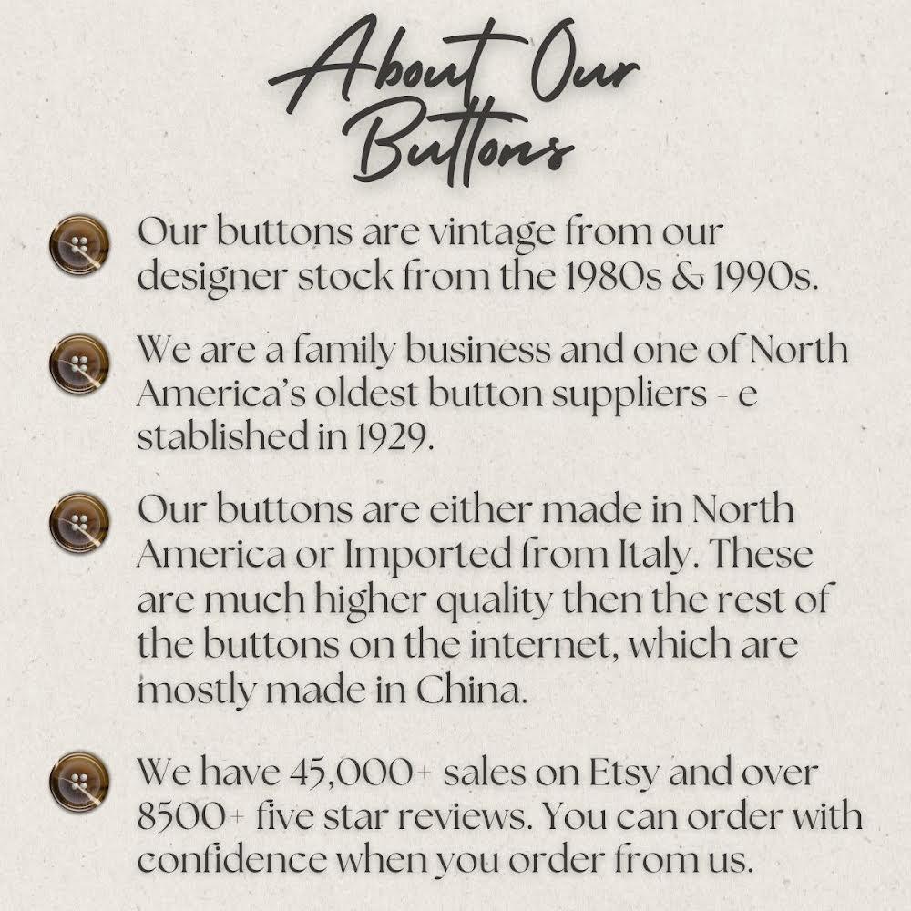 Set of 12 Vintage Yin Yang Effect 4-Hole Polyester Buttons - Perfect for Sewing, Crafting, and Decorative ProjectsElevate your sewing and crafting projects with these unique vintage 4-hole polyester buttons featuring a striking Yin Yang marble-like effect. Manufactured in Italy in the 1990s, these buttons bring a touch of elegance and individuality to jackets, coats, sweaters, dresses, and more.These one-of-a-kind buttons are sourced from our extensive collection of authentic vintage buttons. Each set is brand new, never before used, and ideal for enhancing your DIY projects, upcycling clothing, or replacing buttons on your favorite garments.Key Features:Material: High-quality polyester with a marble-like Yin Yang effect
